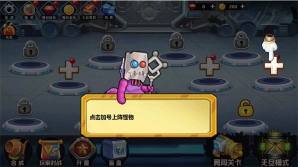 回到主界面后,点击“+”号添加小怪物到战斗阵容中。在布置阵容时,建议将近战类型的小怪物安排在前排,而远程和辅助类型的小怪物则放置在后排。
