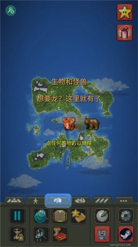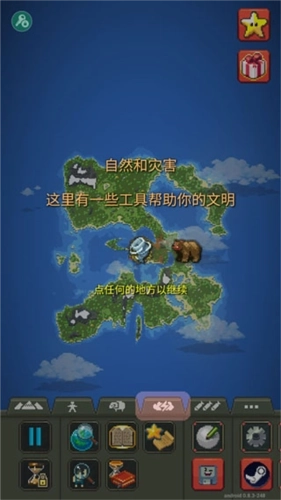 2、这是一款以俯瞰视角为核心的模拟沙盒游戏,玩家将以上帝视角见证世界的演变、文明的兴衰、生物的生息以及自然灾害的发生。游戏内包含丰富多样的文明生物与自然灾难元素,玩家既能静静观察这一切的发展,也能主动对其进行干预和改变。