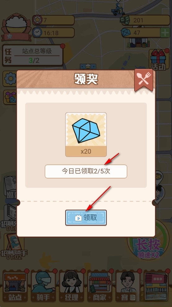 2、外卖大亨采用了十分可爱的卡通风格呈现内容,玩家也能够通过每日签到的方式领取相应奖励。