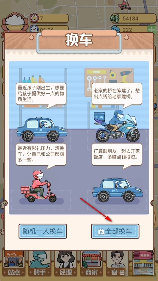 然后点击【全部换车】