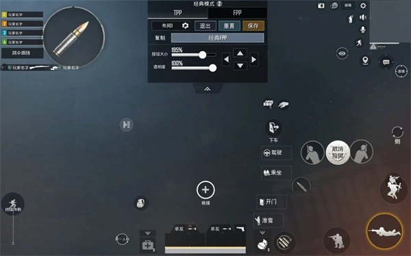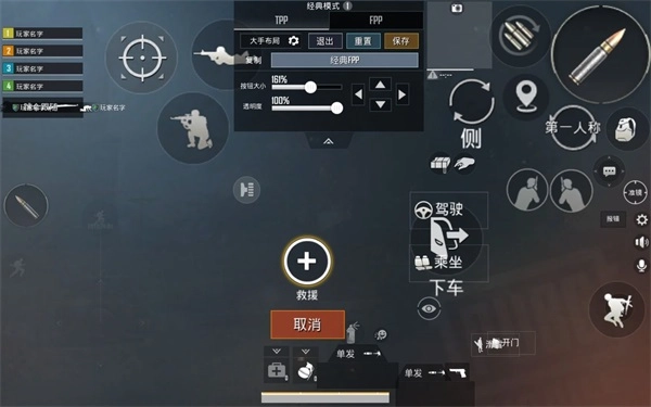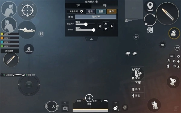 4、然后就是四指了,四指较三指就是多了右上角开镜键,空出右手大拇指可以控制左右探头,使出摇摆枪法,操作指法为:开镜开火探头走位全部一起,一气呵成,不拖泥带水就是四指较三指最大的区别。
