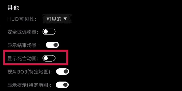 5.在上方【一般】中往下滑,如果不想看到死亡动画,可以将【显示死亡动画】关闭。