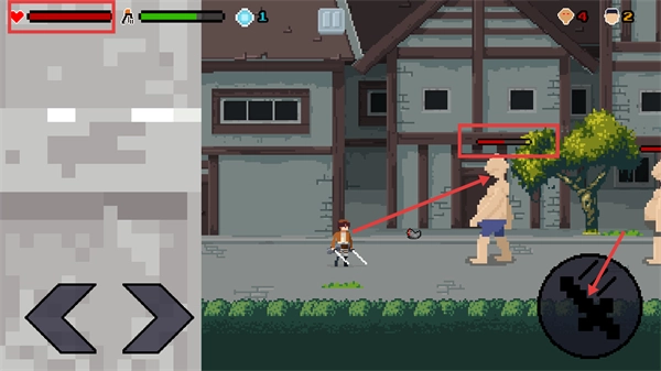 战斗过程中,要留意左上角的血量与攻击条,以及右上角的巨人数量统计。通过左右移动按钮来调整自身位置,借助右侧的攻击按钮对巨人发起攻击,同时还要注意观察巨人的血量条。