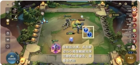 3. 战场上玩家可自由操控的是“小小英雄”,它的作用是在选秀阶段抢装备、选英雄,以及拾取战利品法球。战斗开启后,场上的英雄会自动作战,无法手动控制。