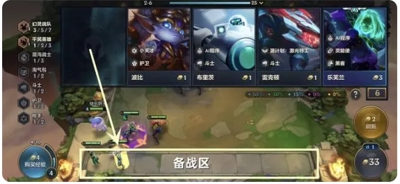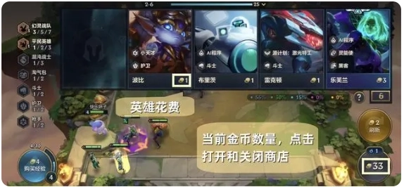 2.点击英雄完成购买操作后,该英雄将进入备战区;点击商店区域或屏幕上的任意空白位置,即可关闭商店界面。
