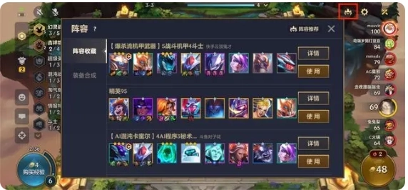 右上角的阵容按钮,既能查看当下的热门推荐阵容,也支持提前自行设置。