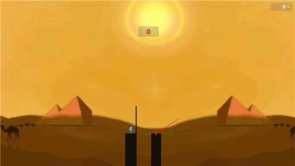 1、游戏开始,点击屏幕即可延长棍子,放手就会倒下,要刚好让端点落在平台上。