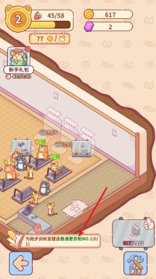 1、你可以自由打造专属的猫咪健身房,持续建造并升级各类健身设备,以此提升经营收益,获取更多金币。