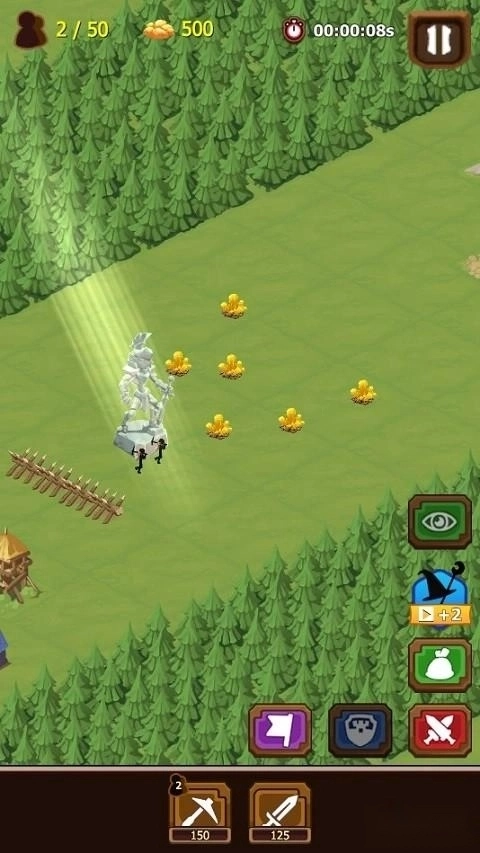 在游戏默认设置下,会有两名火柴人劳工供玩家使用,这些劳工将自行前往金矿进行采矿作业。