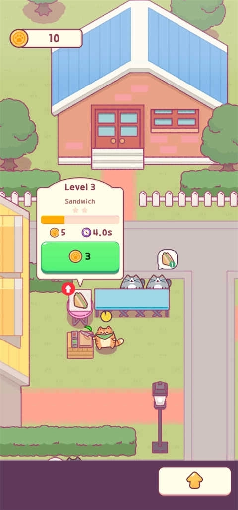 6、点击下方黄色的箭头,在这里可以获得一只猫猫,它能帮你制作三明治。