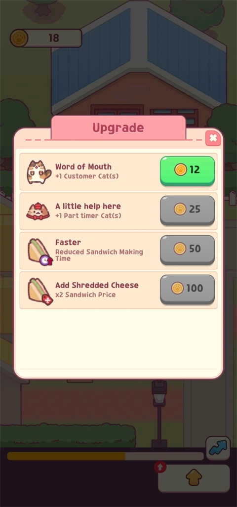 7、当玩家拥有更多金币时,可以升级制作三明治的速度,还能添加奶酪丝——这样能让三明治的价格提升两倍。