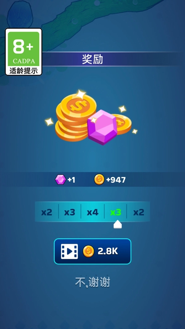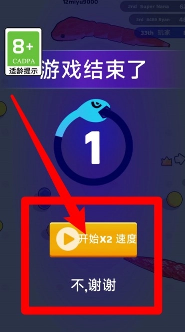3.游戏结束后,玩家可以选择观看广告以获取双倍速度的复活机会,从而在失败后快速重返战场,继续感受紧张刺激的对决体验。