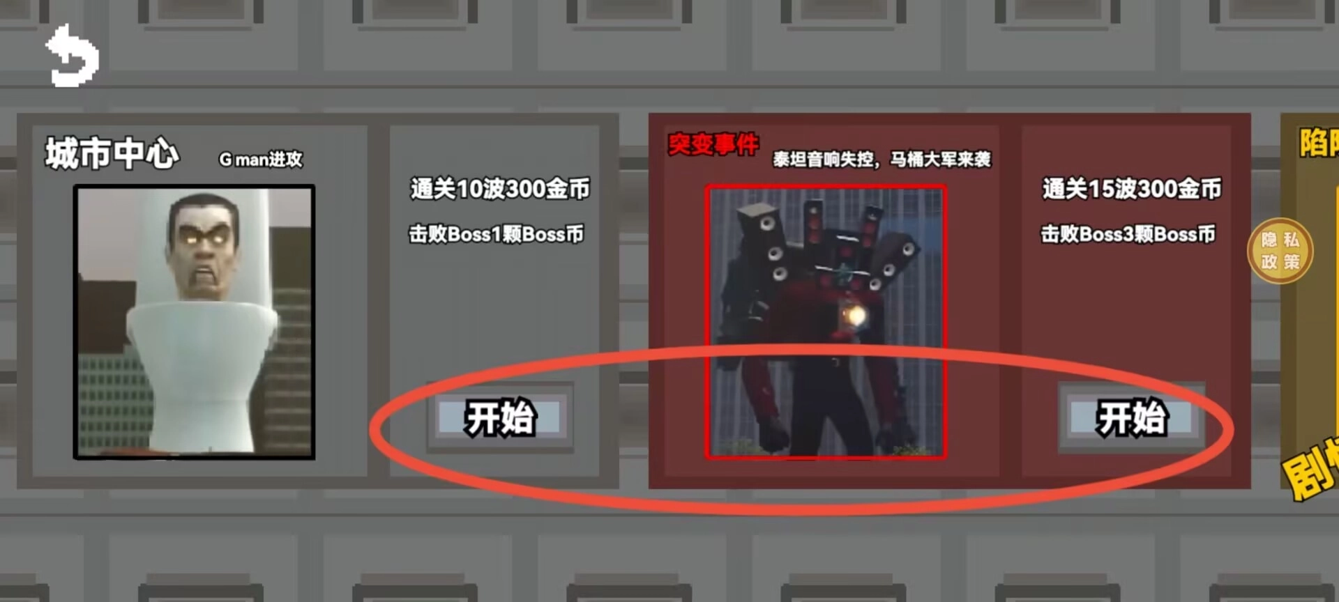 1、进入游戏主界面后,选择塔防模式,所有关卡都能自由挑选,通过左右滑动来浏览不同关卡,点击想要挑战的关卡就能开始游戏。