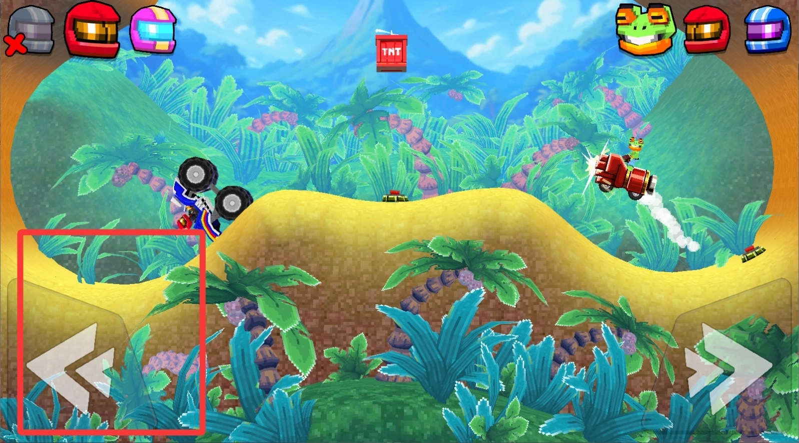 2、要控制赛车左右移动,得依靠屏幕左下角的按键,按左边的按键赛车就会往左开,按右边的按键赛车则会往右拐,驾驶时要注意别让赛车掉下去。