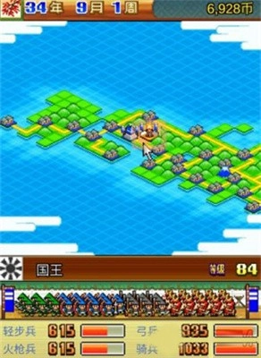战争部分:兵力主要划分为轻步兵、弓兵、炮兵与骑兵。建议按照关卡4:2:4:2的比例来编排军队。通关时的最终兵力配置情况如下: