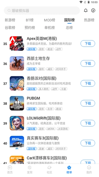 4、榜单功能,玩家能看到各个类型的游戏排行榜。