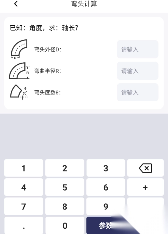 4、在对应的输入框内填入你所测量的管道数据(也能够直接从参数中进行选择),接着点击计算。