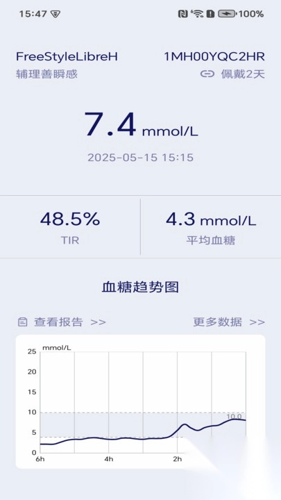 1、当用户佩戴雅培(Abbot)LibreH CGM(动态血糖)设备时,便于用户在居家状态下每日查看佩戴期间的血糖监测数据。