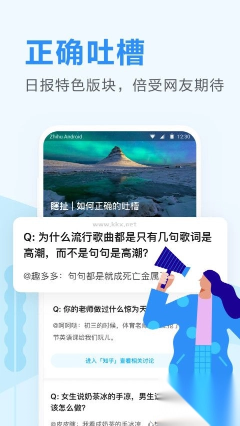 1、讨论场:在问题之下,基于您的兴趣,将回答、想法等各种不同形态的丰富内容,整合到同一条讨论信息流里,使您能够直接在当前页面进行阅读。