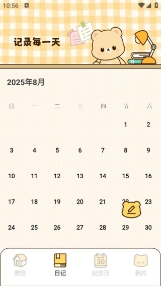 3、日记界面以日历进行呈现,方便去添加日记内容,让你轻松记录每一天。
