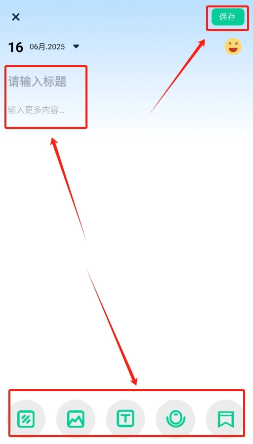 3、输入日记标题,再把想写的内容填进去,写完后点右上角的保存,就大功告成啦。