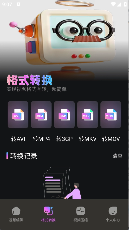 2. 在格式转换页面,支持将文件转换为AVI、MP4、3GP、MKV以及MOV格式。