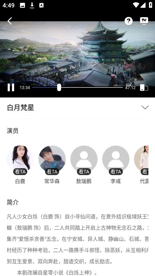 2、随后随意播放一部影视作品,在此以“白月梵星”作为示例。