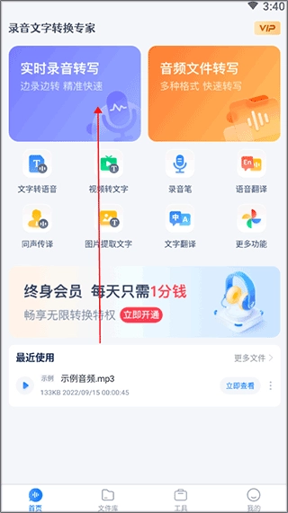 1. 打开录音文字转换专家,点击进入“文件库”页面。