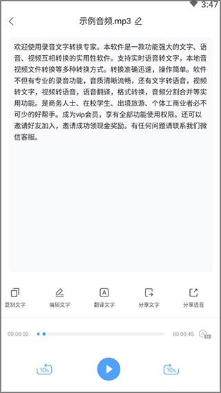 2. 能够快速把不同格式的音频文件转换成可编辑的文字文件。