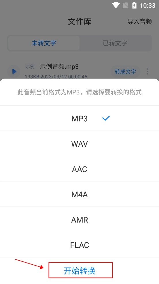 4、挑选你想要转换的文件格式,接着点击“开始转换”,就能完成音频格式的转换。