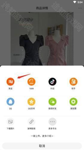 1、打开软件,选择自己喜欢的商品宝贝,点击“上传/分享”选项。