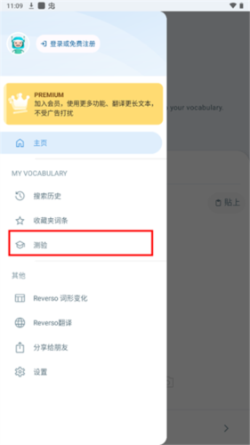 2. 进入“测验”界面