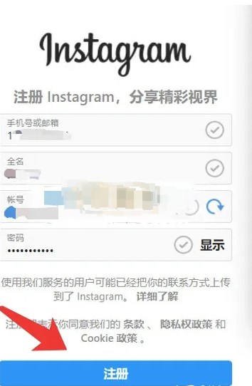 第二步,打开Instagram,点击底部的【注册】按钮。