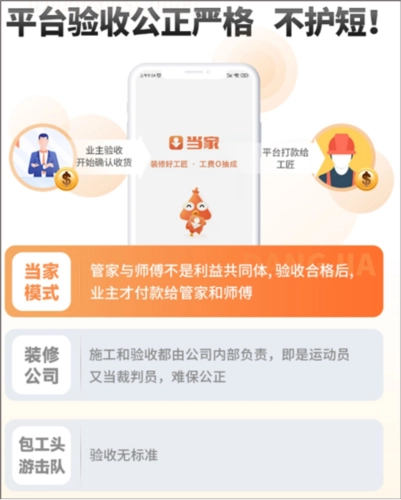 当家装修为用户准备了多种多样的装修方案,而且用户还能够招聘师傅,众多专业装修公司可供选择,致力于为用户呈上最优质的装修服务。这里所有价格都明确公示,服务绝对让您满意。会为您提供全房施工费用明细单以及材料费用明细单,不仅让费用更加一目了然,这些清单还能直接拿去与其他平台比价。施工时可灵活采购,没有预付款,也没有捆绑套餐,平台提供质保,让装修更有保障,既省钱又省心。
