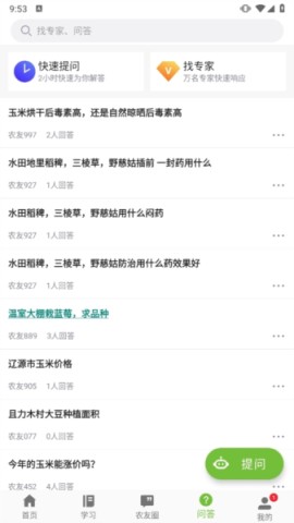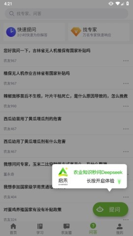 7、要是在农业领域碰到难题,别忘记前往“问答”专区进行提问,这里技术响应迅速,甚至还能借助AI的智慧为你提供助力。