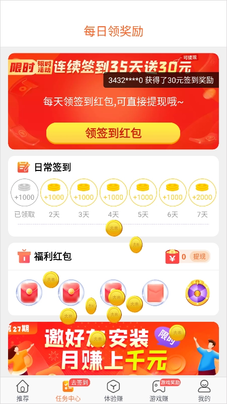 用户只需安装并使用应用,再通过评论等方式,就能轻松赚大米,随心获取自己想要的收益。