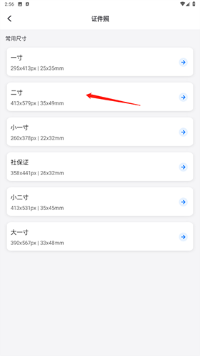 2、点击需要的尺寸,选择照片。