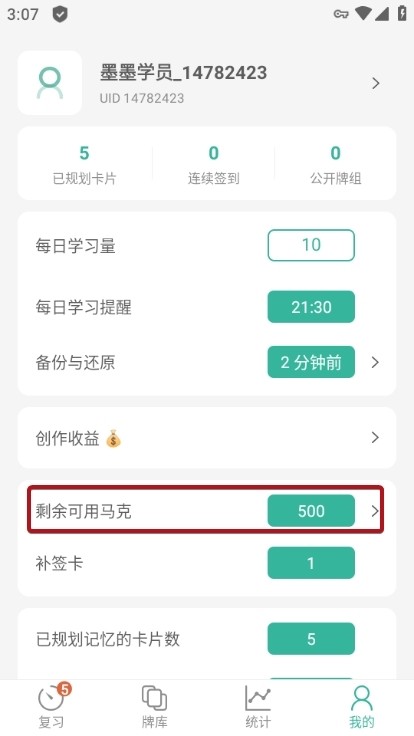 3. 登录之后进入首页,首页分为学习、牌库、统计以及我的这几大板块。