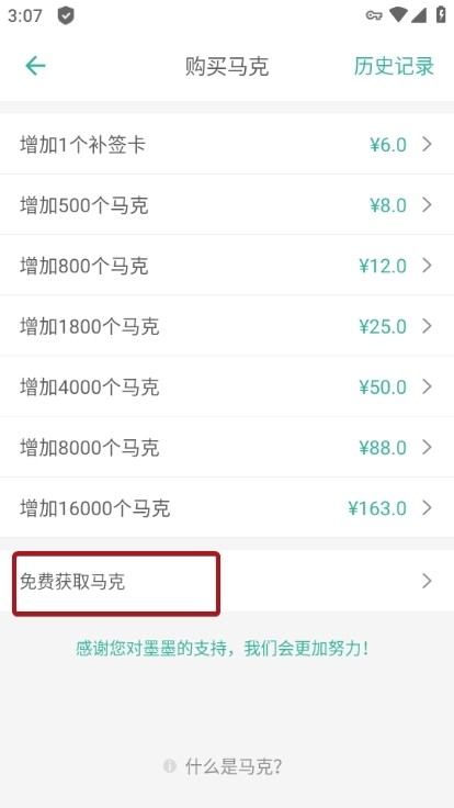 2. 在马克的购买页面下方,能够看到免费获取马克的功能。
