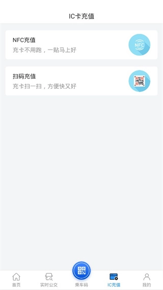 3、于首页处,我们能够看到提供了IC卡充值、实时公交、账户充值等服务。
