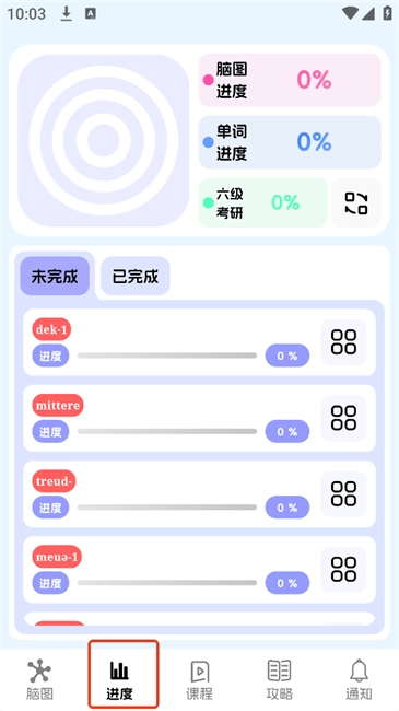 2. 于【进度】板块,可查看自身所学课程的进度情况,此进度信息能为后续学习计划的制定提供参考依据。