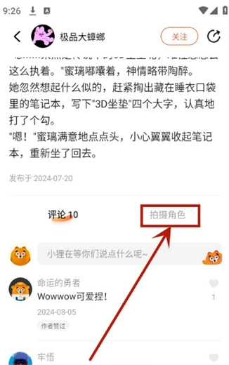 选择互动选项的操作步骤如下:请滚动到页面底部,找到并点击【拍摄角色】按钮,即可准备开启角色互动体验。