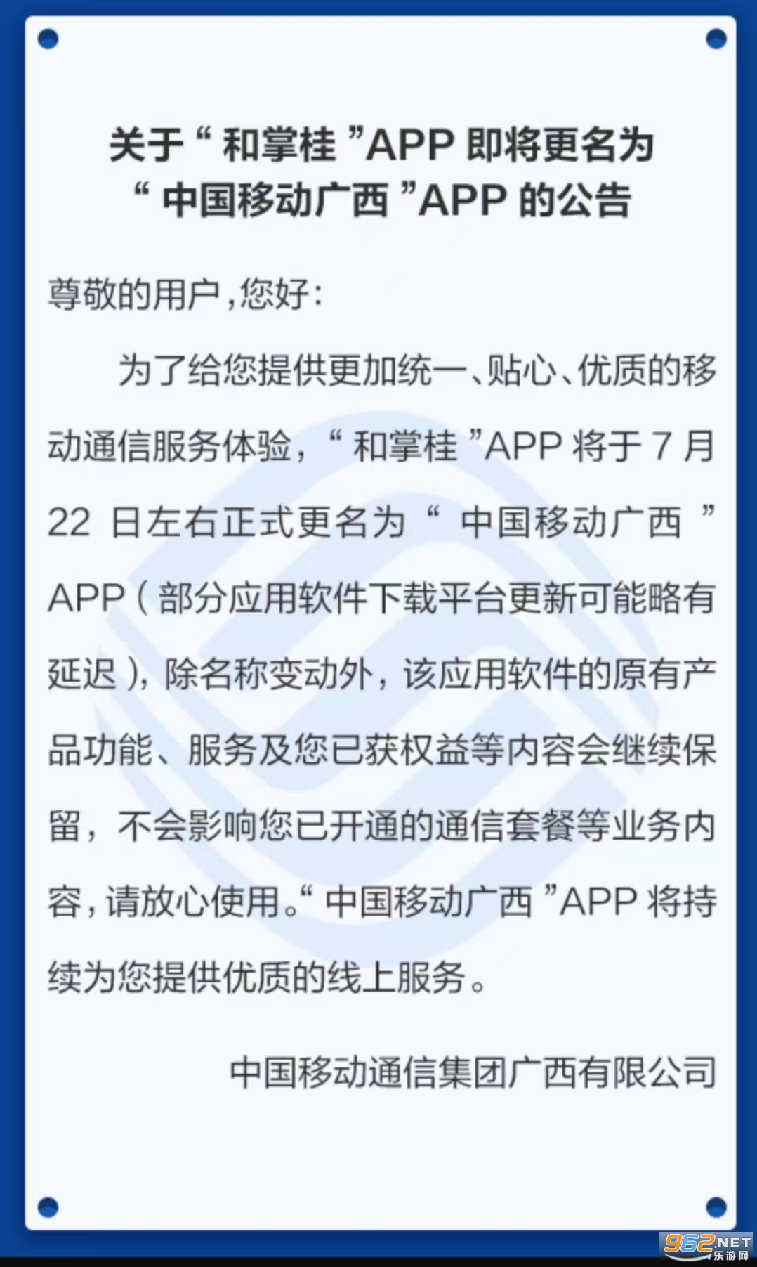 】“中国移动广西”是中囯移动广西分公司量身为广西移动客户打造的集通信服务.权益.娱乐等功能于一体的广西移动。