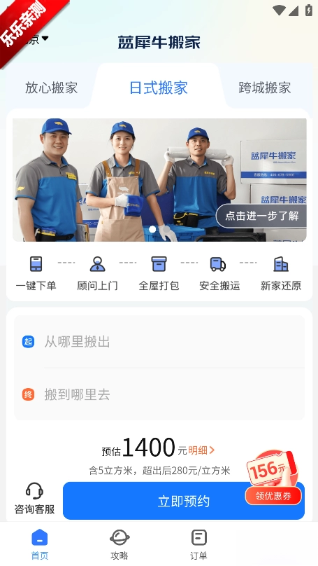 蓝犀牛搬家作为专业的线上搬家服务平台,凭借整合优质搬家资源与智能技术的优势,为用户提供普通搬家、企业搬家等多元服务。用户只需一键下单,即可实时查看费用明细与车型匹配情况,体验明码标价的省心服务。此外,平台还推出四大保障承诺,全方位确保搬家过程安全无忧。