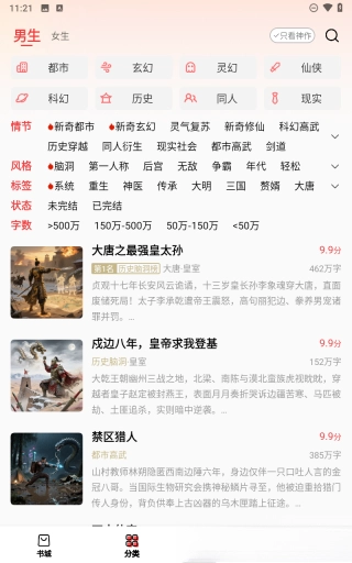 小说内容依据题材、热度和更新状态做了细致分类,查找作品时能更高效。