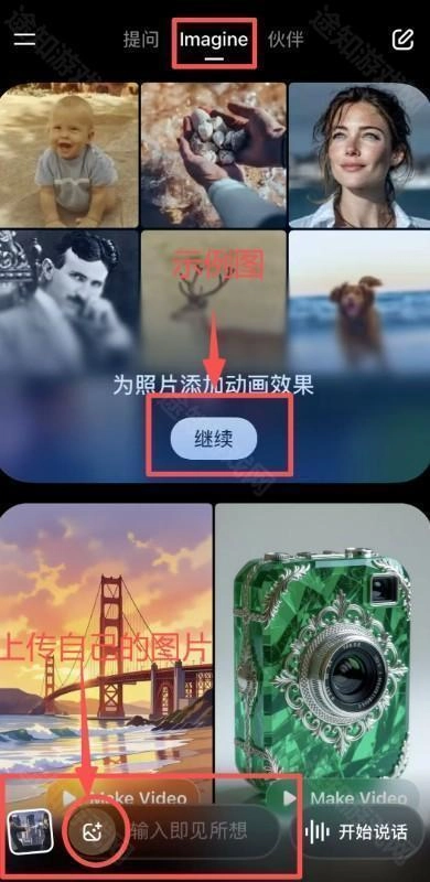 你可以上传图片,也能自己先生成图片;既可以直接用这些图片生成视频,也可以选择示例图片来制作视频。