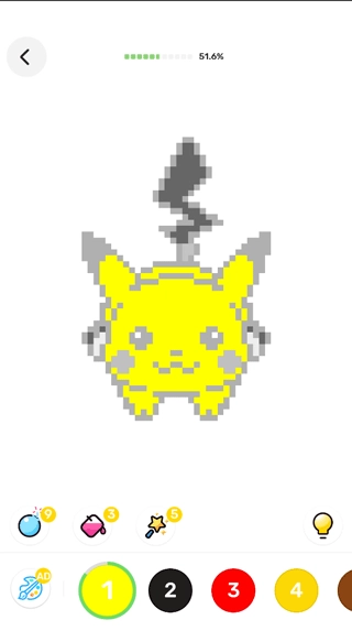 按照提示给皮卡丘涂色,每涂完一种颜色,系统就会自动切换到下一种颜色进行填充。