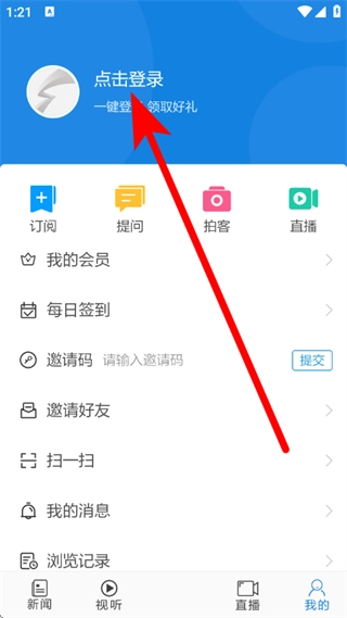 打开闪电新闻应用,进入“我的”页面,找到并点击登录按钮,即可进入登录界面。