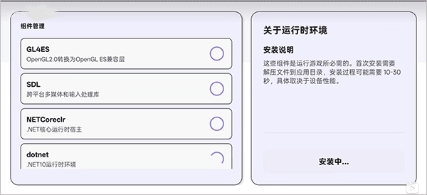 打开启动器后,先授予所需的权限,接着在启动器里点击安装按钮,完成必要运行环境的安装。