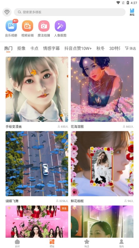 1、热门模板和特效: